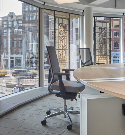 NRC's offices are located at Nes 76, a bustling street in the heart of Amsterdam. This central location reflects NRC's emphasis on creating an inspiring work environment. Approximately 400 workstations were outfitted with our Lezgo Air, highlighting the scale and scope of this project.