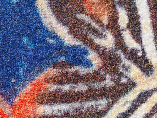 The Blaues Quadrat rug, crafted under the guidance of acclaimed textile artist Margret Schriefers-Imhof, pays tribute to art luminaries such as Mondrian and Rothko. Drawing inspiration from the potency of color squares or rectangles, the design showcases a lively spectrum and subtle transitions, imparting an organic allure to the space.