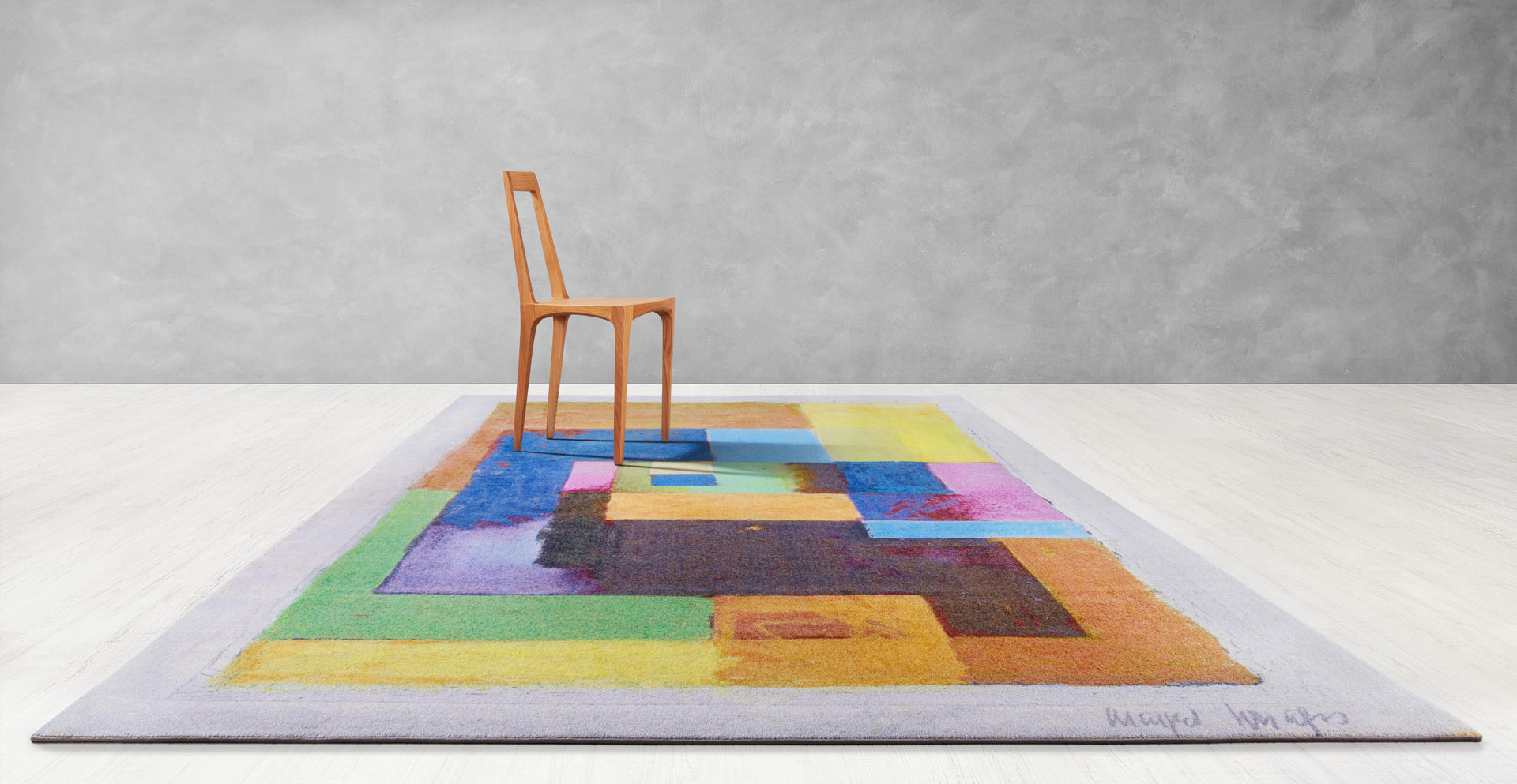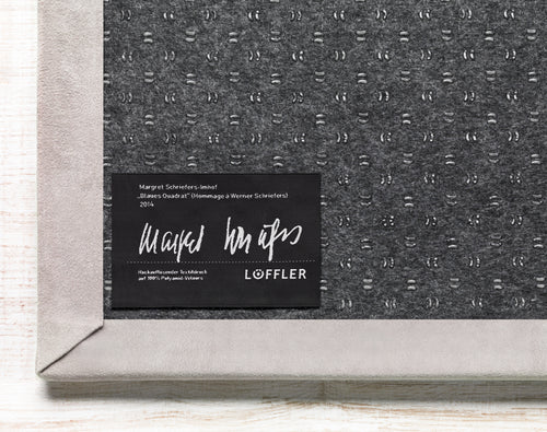 Fabrics and carpets by Margret Schriefers-Imhof were showcased at exhibitions and trade fairs, including the 2012 "Color Dreams" special exhibit at the International Furniture Fair in Cologne. Just before her passing in October 2014, she contributed a series of carpet designs for Löffler, a legacy we proudly continue.
