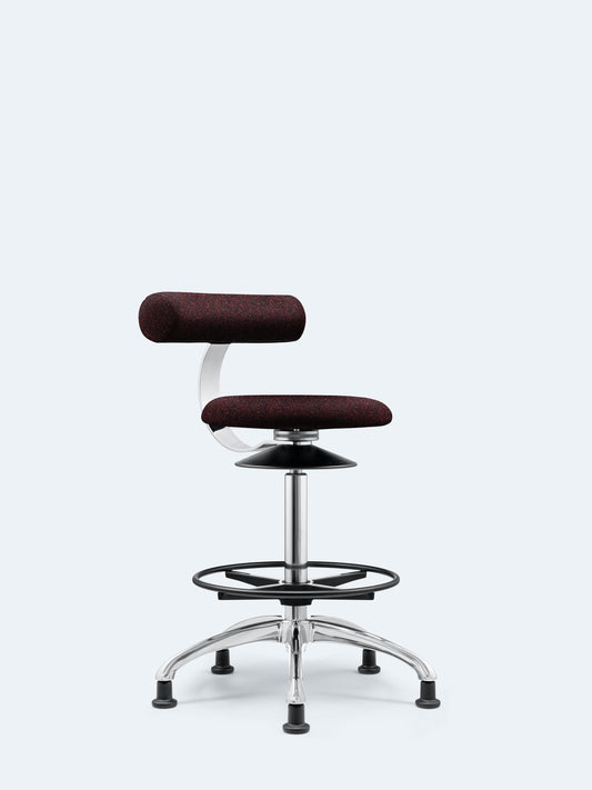 The Mesami bar stool features a 67 cm seat height and a robust 4-legged frame crafted from chrome-plated steel, complete with crossbars. The seat shell comes in natural beech, honey, bordeaux, or black stain and lacquer finishes, or with optional padding. Upholstery fabrics are adhesive-free and offer a diverse range of materials and colors. An outstanding characteristic is the loop, honored with the Red Dot Design Award.