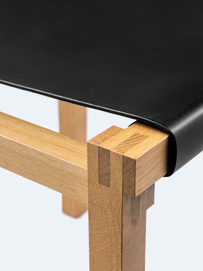 Der Kernlederhocker WB 4 ist eine Kreation von Werner Blaser, die schicke Schlichtheit mit hochwertiger Handwerkskunst verbindet. Er ist aus europäischer Eiche mit einem glatten, matten Finish gefertigt und verfügt über einen luxuriösen Sitz aus schwarzem Kernleder für Komfort. Der WB 4 ist vielseitig genug für jeden Raum und verspricht Langlebigkeit und zeitlosen Stil. Er wird von erfahrenen Handwerkern gefertigt.